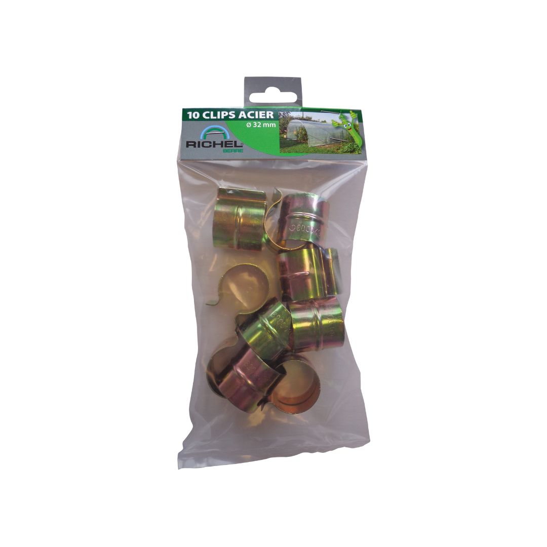 Sachet de 10 clips en acier galvanisé, diamètre 32 mm