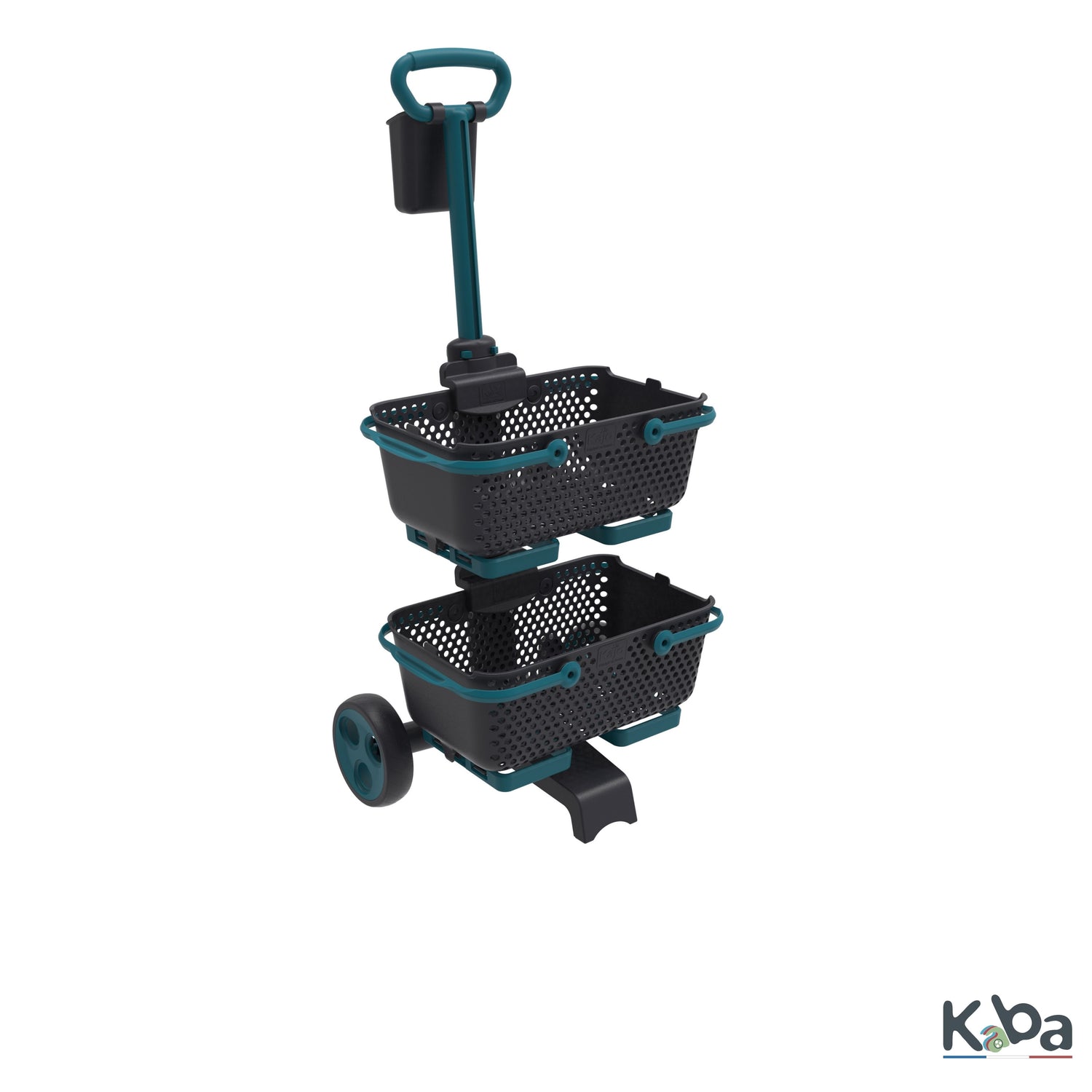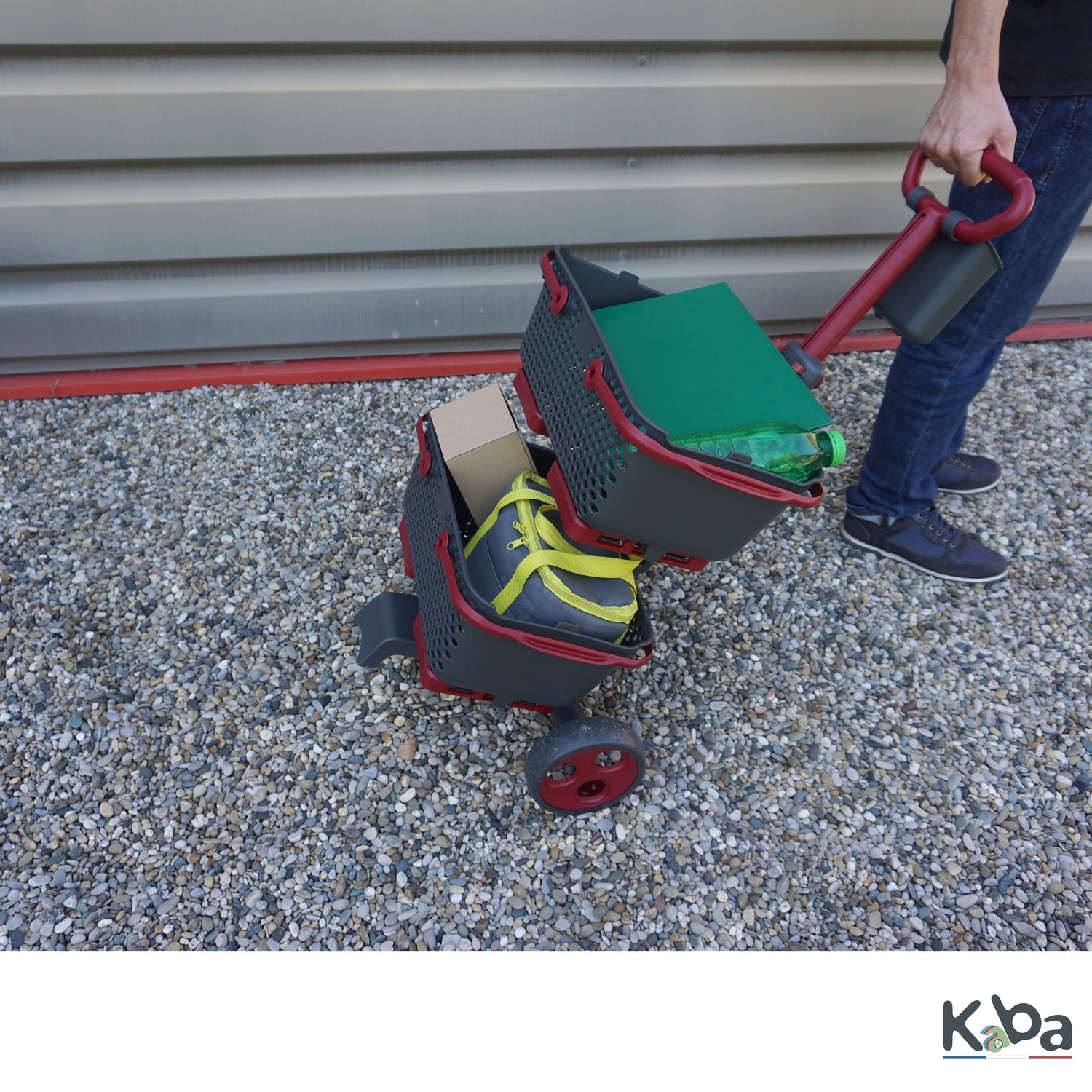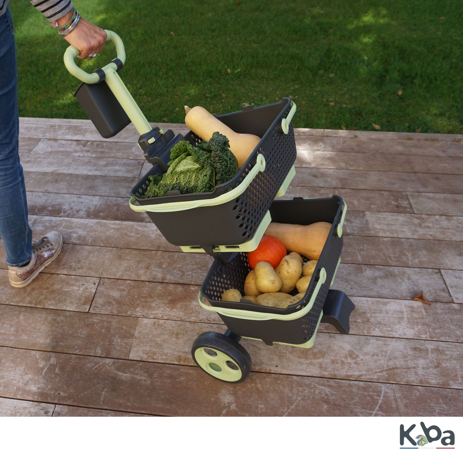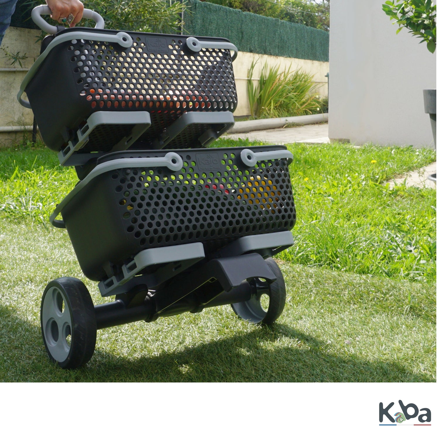 Le chariot Kaba permet de transporter 2 paniers Kajo de 15 L (attention : possibilité d'acheter avec les 2 paniers Kajo 15L ou sans les paniers)Ergonomique, ce chariot à roulettes en polypropylène est très léger et maniable.