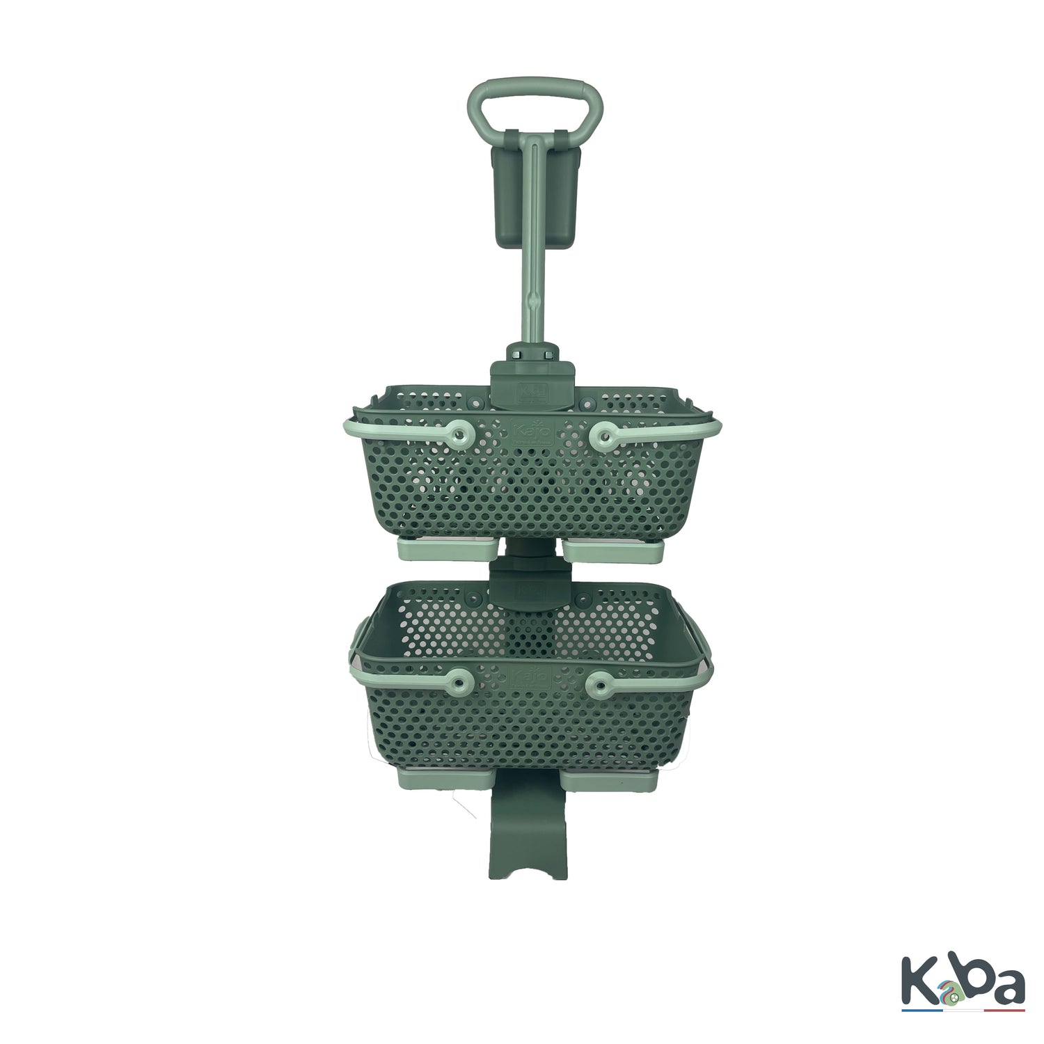 Associer et transporter vos paniers Kajo 15 L (attention : possibilité d'acheter avec les 2 paniers Kajo 15L ou sans les paniers), régler la hauteur de la poignée selon votre taille pour un meilleur confort.