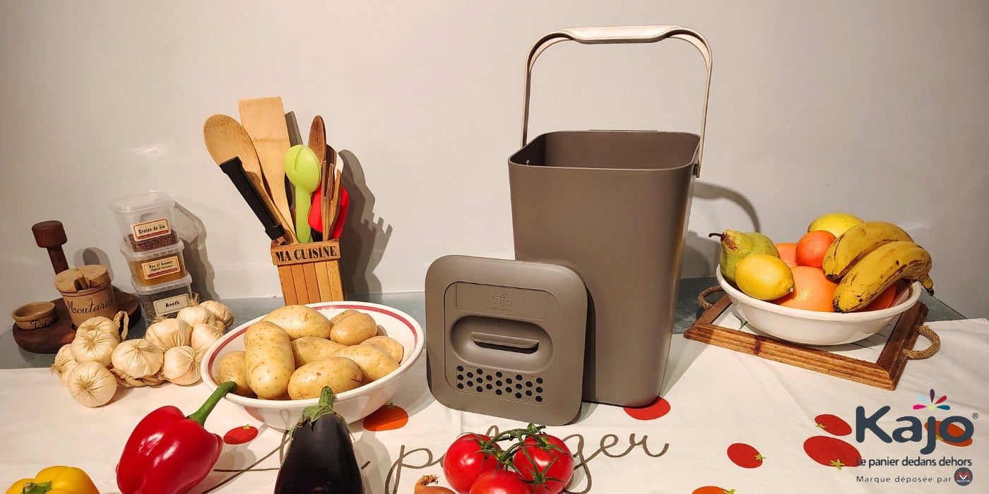 Seau de récupération des déchets organiques (contenance 7,5L) pour rassembler vos déchets dans la cuisine et limiter les allers-retours au composteur extérieur.