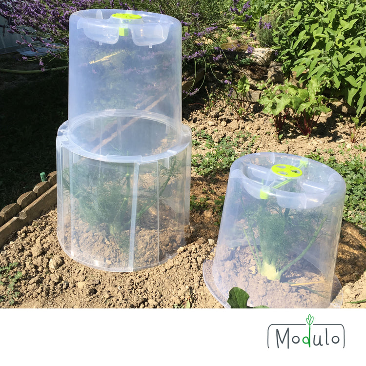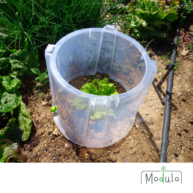 Particulièrement adaptées aux travaux de jardinage, les rehausses associées aux cloches Modul'o s’utilisent comme de petites serres individuelles. Très efficaces pour le forçage des cultures, elles permettent d’activer le démarrage et la croissance des semis et des jeunes plants et protègent du vent et des nuisibles. Elles génèrent un microclimat idéal avec une chaleur ambiante qui contribue à l’épanouissement des plantations et au développement de leurs saveurs.