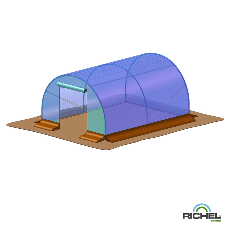 Film de couverture simple de 200 microns pour serre ou abri Richel de 3x4 m. Dimensions du film  7,25 x 4,50 m. Fixations par système de clips acier de diamètre 32 mm (non fournis). Traitée anti UV 4 ans.