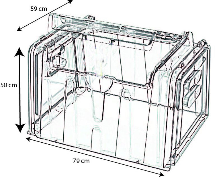 Base tunnel (cm) : L 79 x l 59 x H 50  - Poids unitaire : 2.65 kg