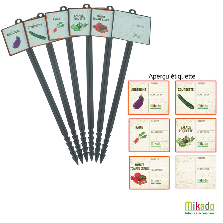 Etiquettes pour plantes (Jalon à semis ou plantations), pour noter les différentes variétés de plants et les dates des semis et/ou plantations.